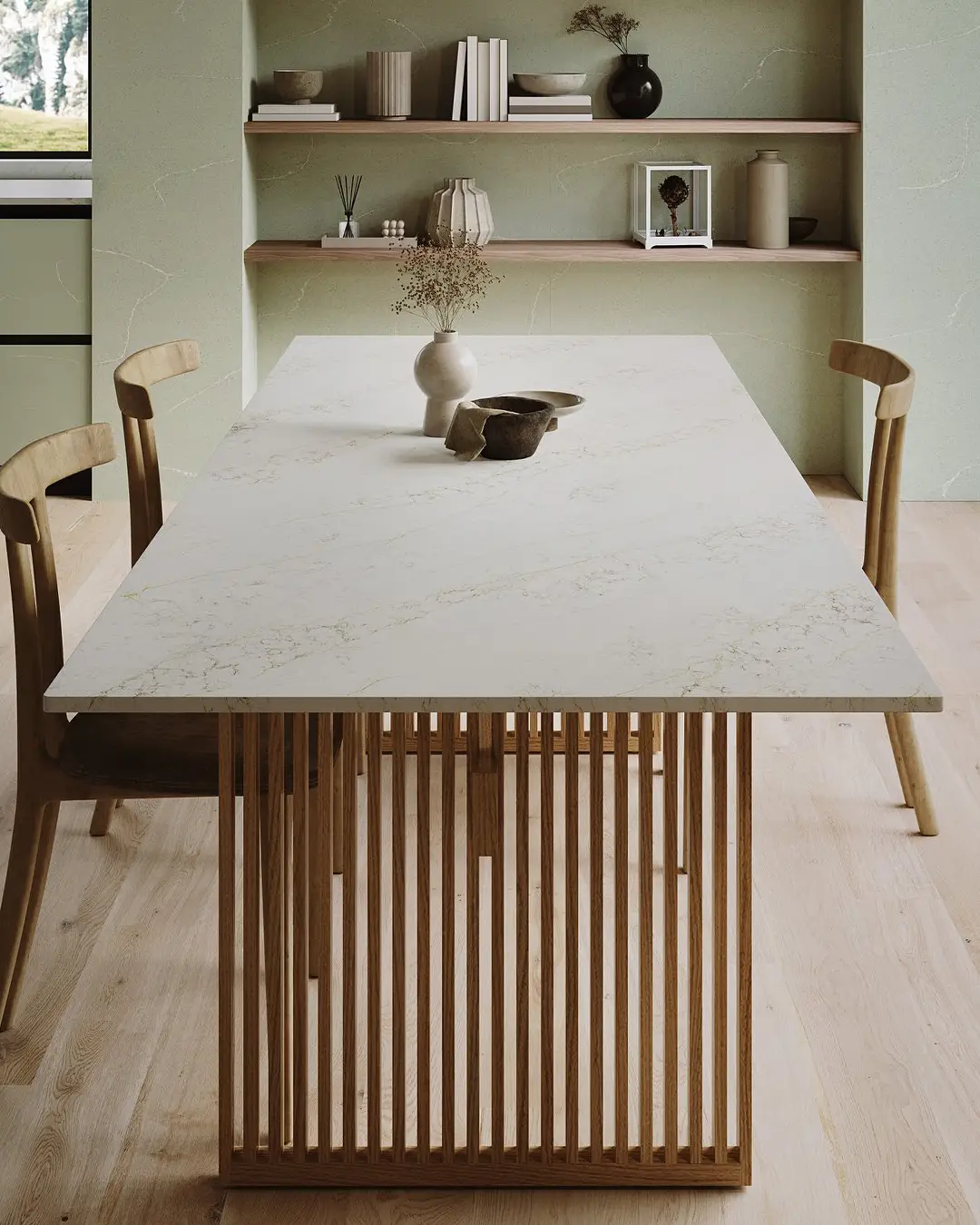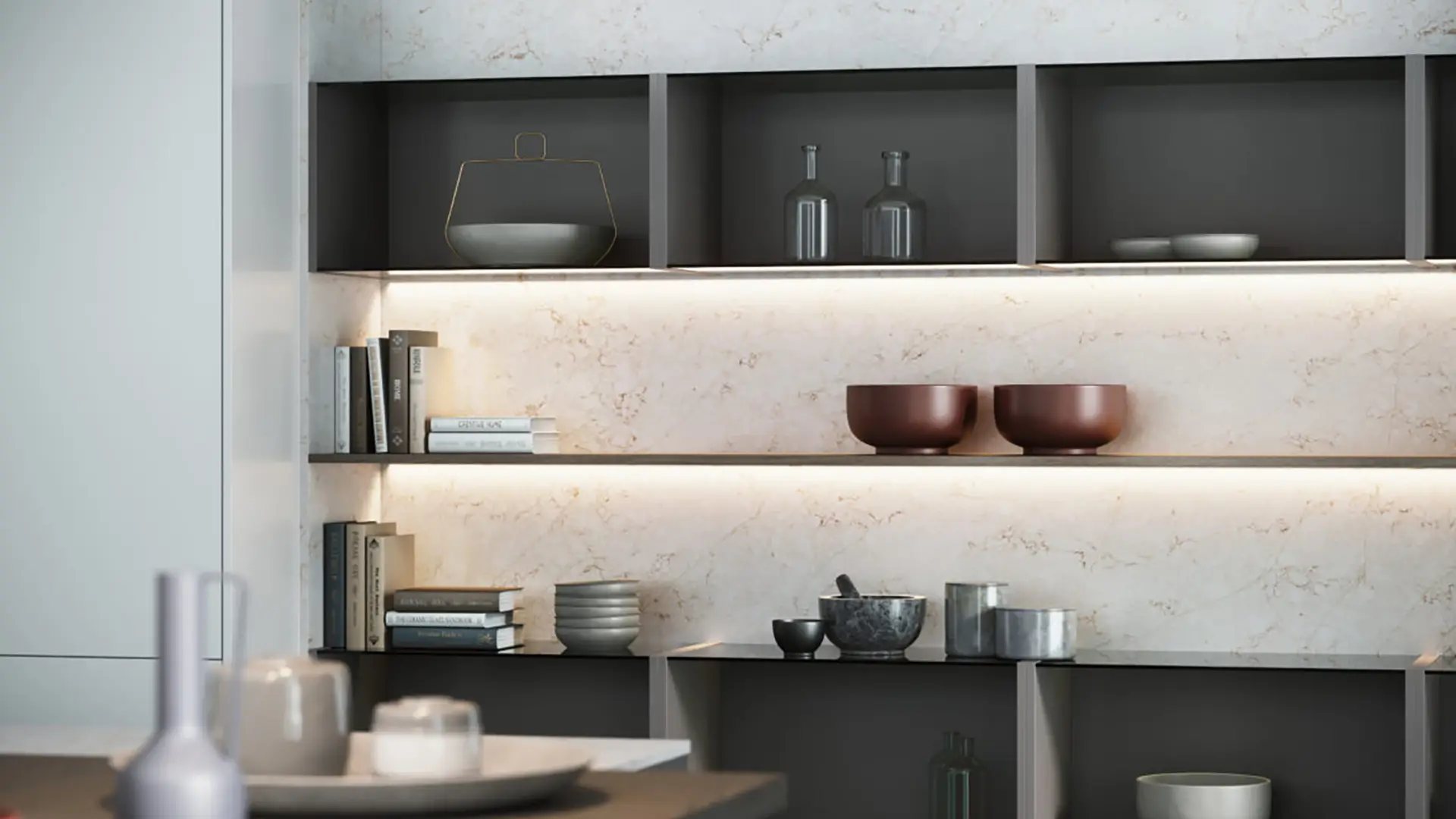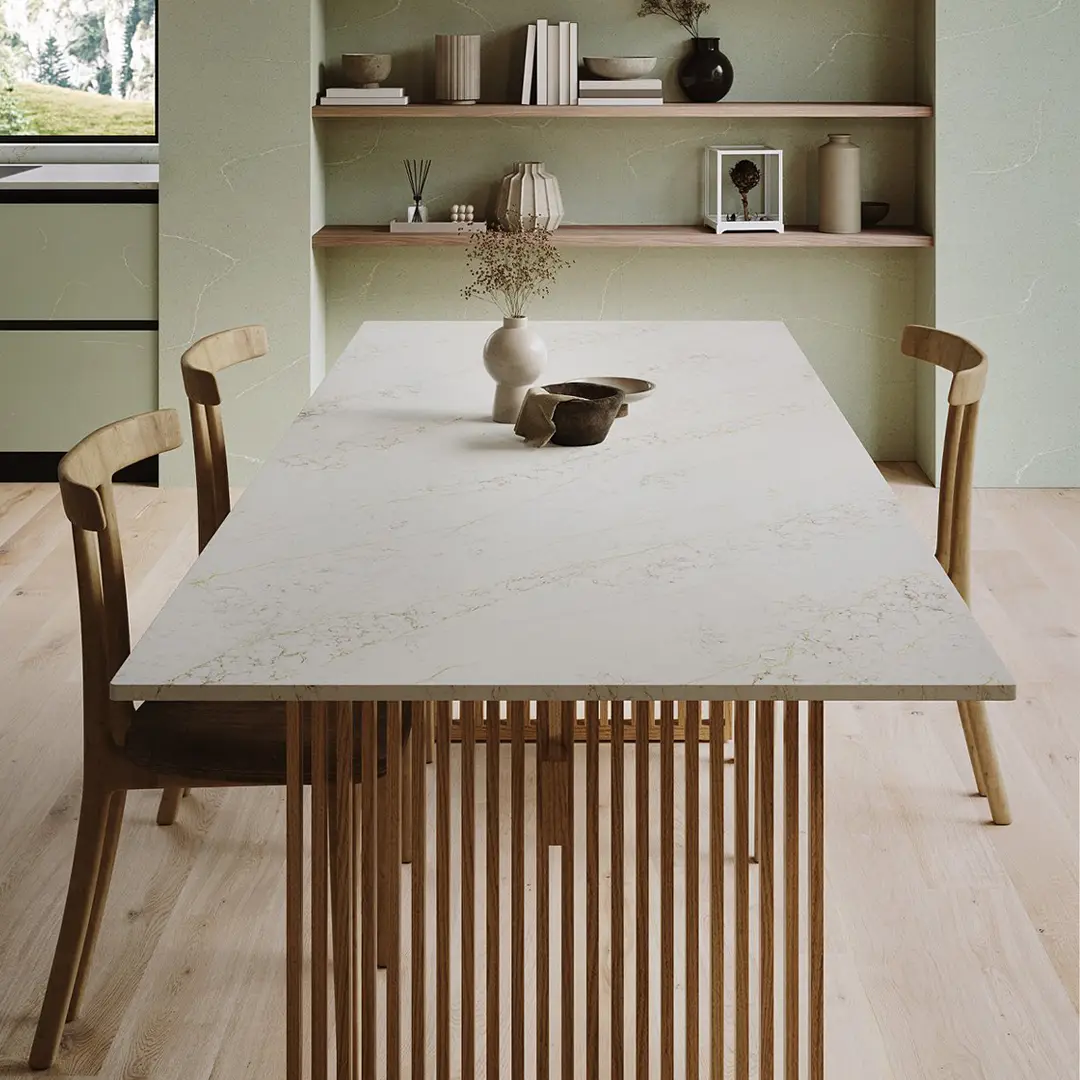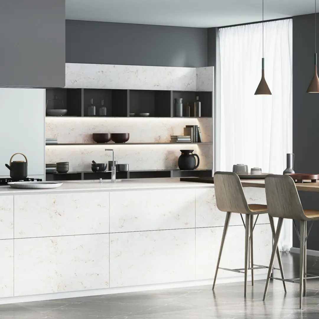 Bianco Luxe viene en el formato jumbo de 320 x 160 cm. Los grandes formatos permiten resolver diseños customizados o superficies extensas en una única pieza. Con menos cantidad de juntas, le dan continuidad visual, higiene y majestuosidad a tu mesada.