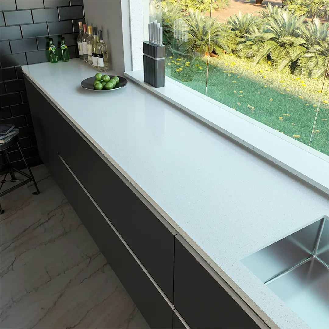 El formato Jumbo (320 x 160cm) permiten resolver diseños customizados o superficies extensas en una única pieza. Con menos cantidad de juntas, le dan continuidad visual, higiene y majestuosidad a tu mesada.